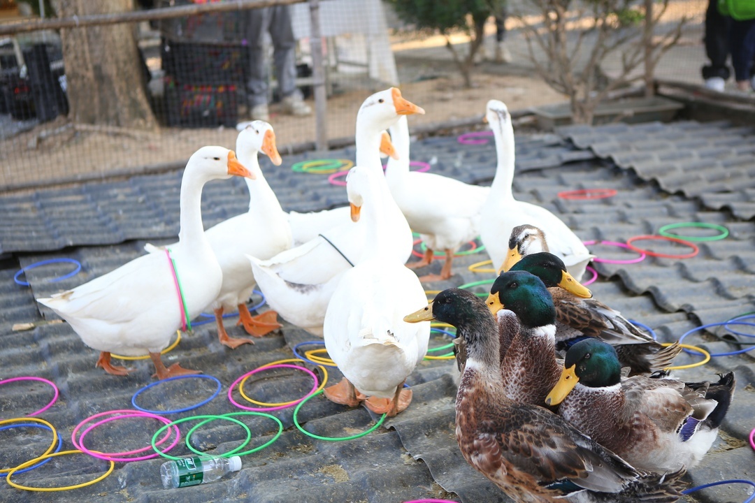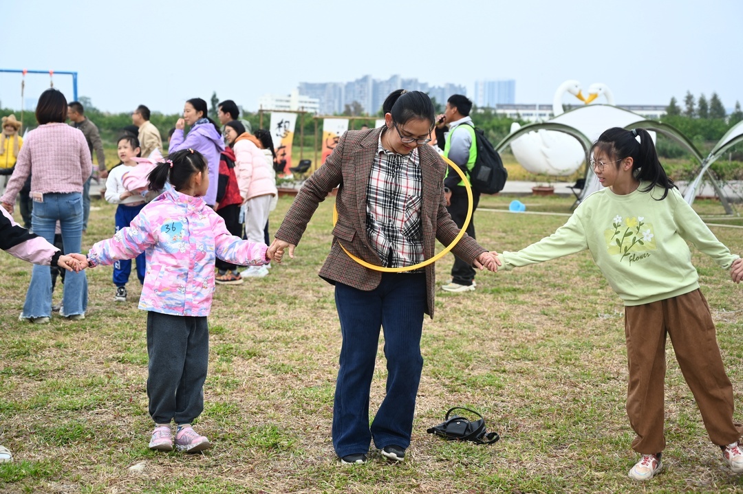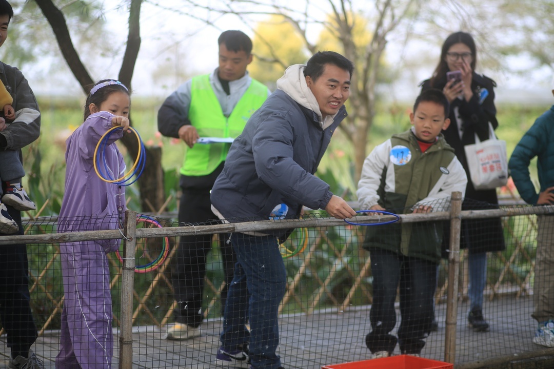 套鸭子环节是活动的欢乐巅峰。肥嘟嘟的鸭子踱步闲游,萌态十足,令孩子们兴奋不已。家长手把手教孩子拿捏套圈姿势,孩子全神贯注、奋力投掷,套中时欢呼雀跃,飞奔拥抱战利品;未中时小脸倔强,誓要再来。欢呼声、惋惜声此起彼伏,亲子同心追逐萌鸭,每一次尝试都是勇气的历练,每一抹笑容皆为亲情闪耀的光芒。